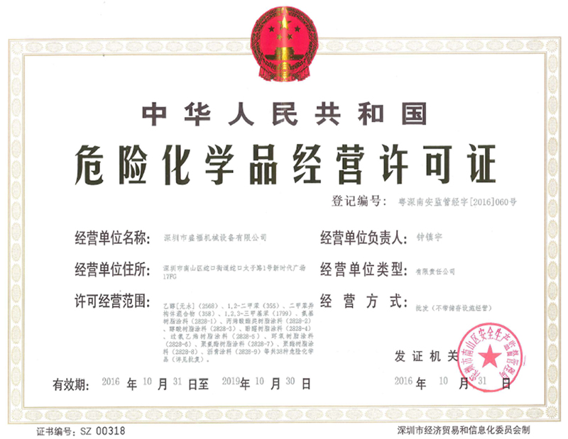 高新技術(shù)企業(yè)證書 、深圳市盛福機(jī)械設(shè)備有限公司-危險(xiǎn)化學(xué)品經(jīng)營(yíng)許可證