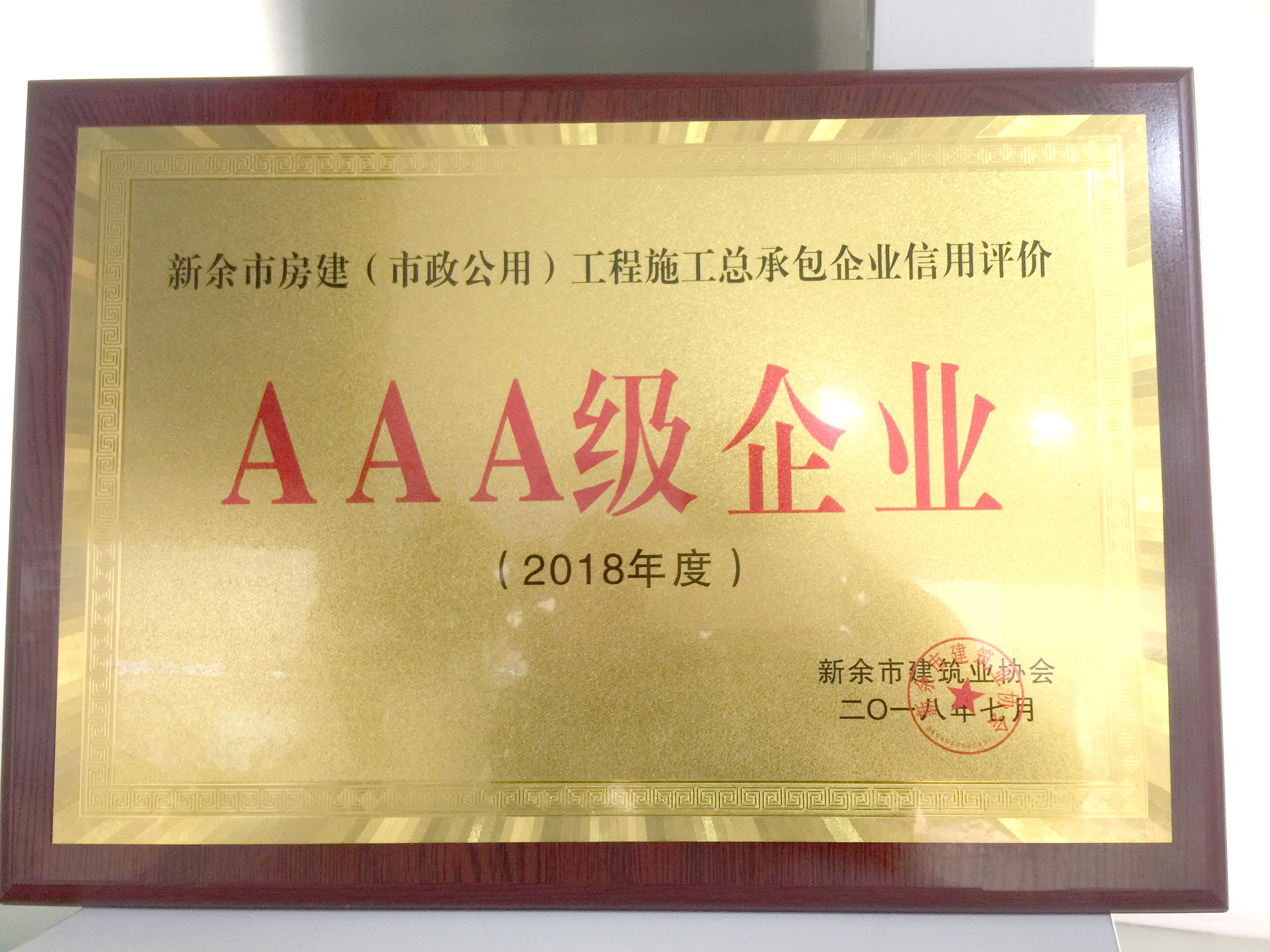 近日,在新余市房建(市政公用)工程施工總承包企業(yè)信用評選的活動中,江西銀龍水環(huán)境建設(shè)有限責(zé)任公司被評定為AAA級信用評價企業(yè)。