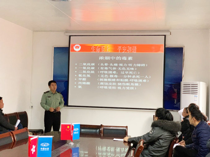 講座中,趙玉龍警官引導(dǎo)員工回顧了全國各地發(fā)生的多起火災(zāi)事故,展示了火災(zāi)發(fā)生后的嚴(yán)重后果,講解發(fā)生火災(zāi)后的安全疏散與逃生知識。他提醒在場的每個人,關(guān)注身邊時刻存在著的煤氣泄漏、電線老化等安全隱患。趙警官詳細講述了在意外發(fā)生前應(yīng)該如何進行預(yù)防;當(dāng)意想不到的災(zāi)難發(fā)生時,應(yīng)如何進行自救。最后,還向大家講解了滅火器械的正確使用方法。