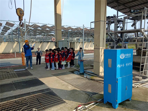 在“世界水日”和“中國水周”即將到來之際,3月14日,分宜中水環(huán)保有限公司舉辦了“污水處理廠開放日”活動,江西分宜第二中心小學(xué)的部分師生以及當(dāng)?shù)孛襟w記者一行20多人參加了該活動。分宜中水總經(jīng)理陳文萍及相關(guān)負(fù)責(zé)人帶領(lǐng)一行人零距離感受了污水處理的全過程。